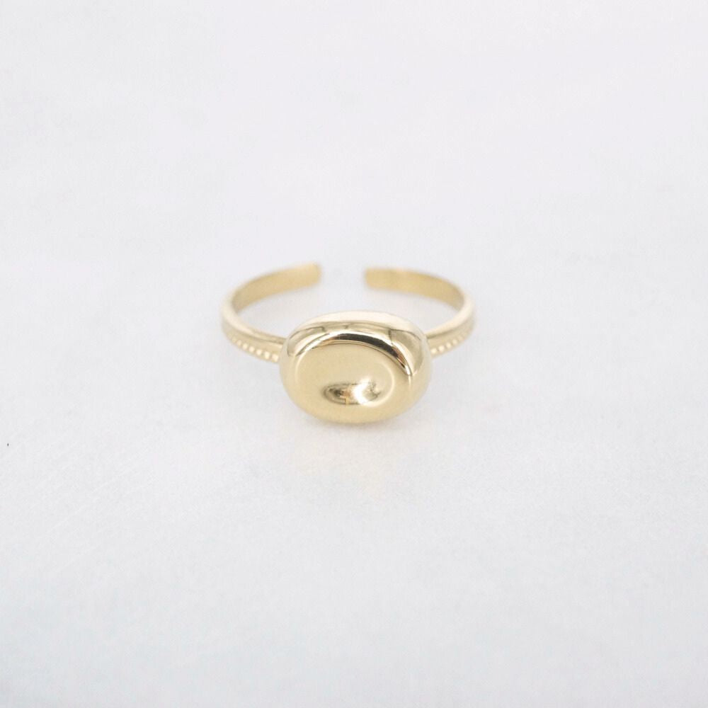 De Meven Ring is een subtiel statement piece met een gladde, organische vorm. De ovale vorm heeft een zachte glans die prachtig het licht vangt, en de fijne band met detail maakt het ontwerp helemaal af. Dankzij het open design is de ring verstelbaar en daardoor comfortabel om te dragen. Gemaakt van stainless steel, dus duurzaam, kleurvast en perfect voor elke dag.