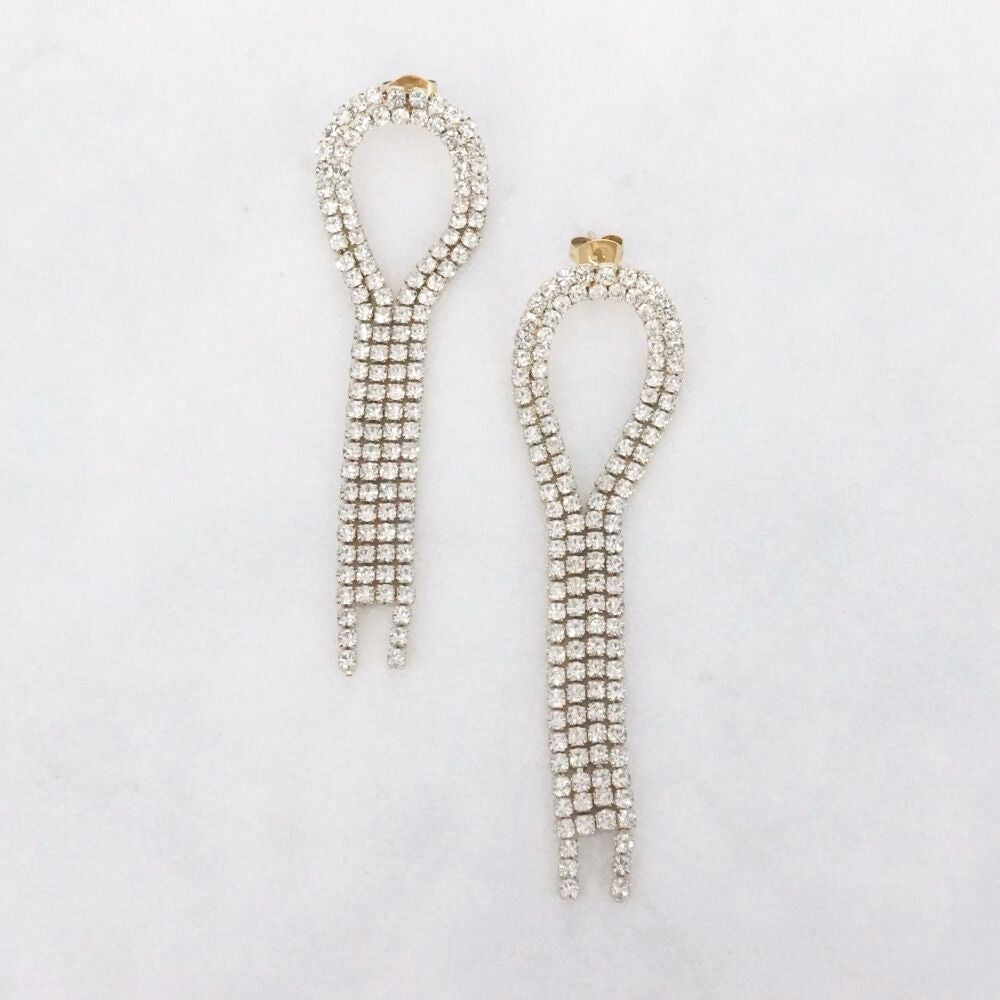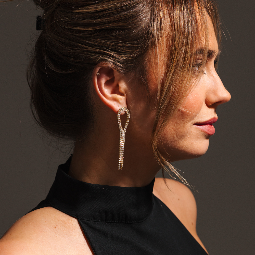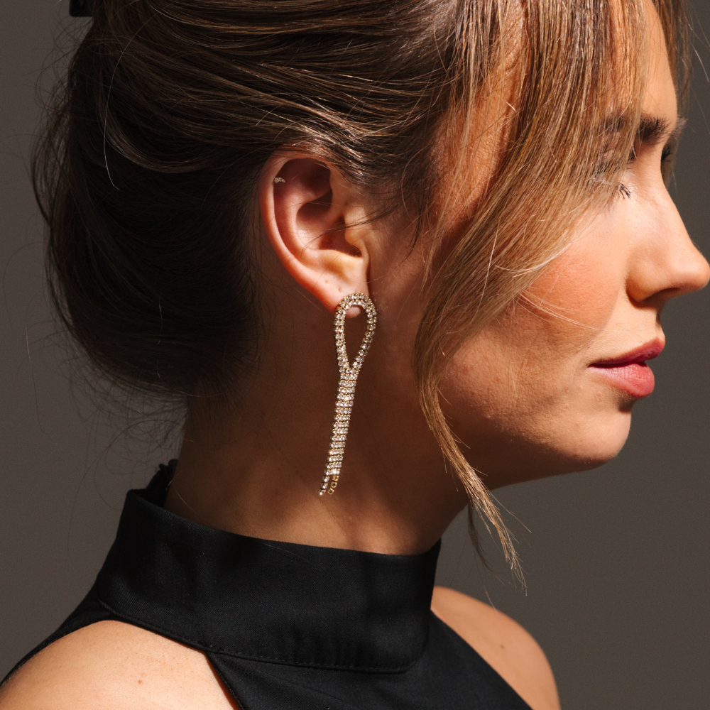 Deze sparkling oorbellen hebben een elegante lusvorm met bewegende stras-fringes, dus perfect voor een feestje of dinner look. Ze vangen super mooi het licht en geven je outfit direct een glam touch. Gemaakt van stainless steel met zirconia steentjes, dus kleurvast én geschikt voor langdurig dragen. Goed om te weten: ze zijn er ook in zilver!