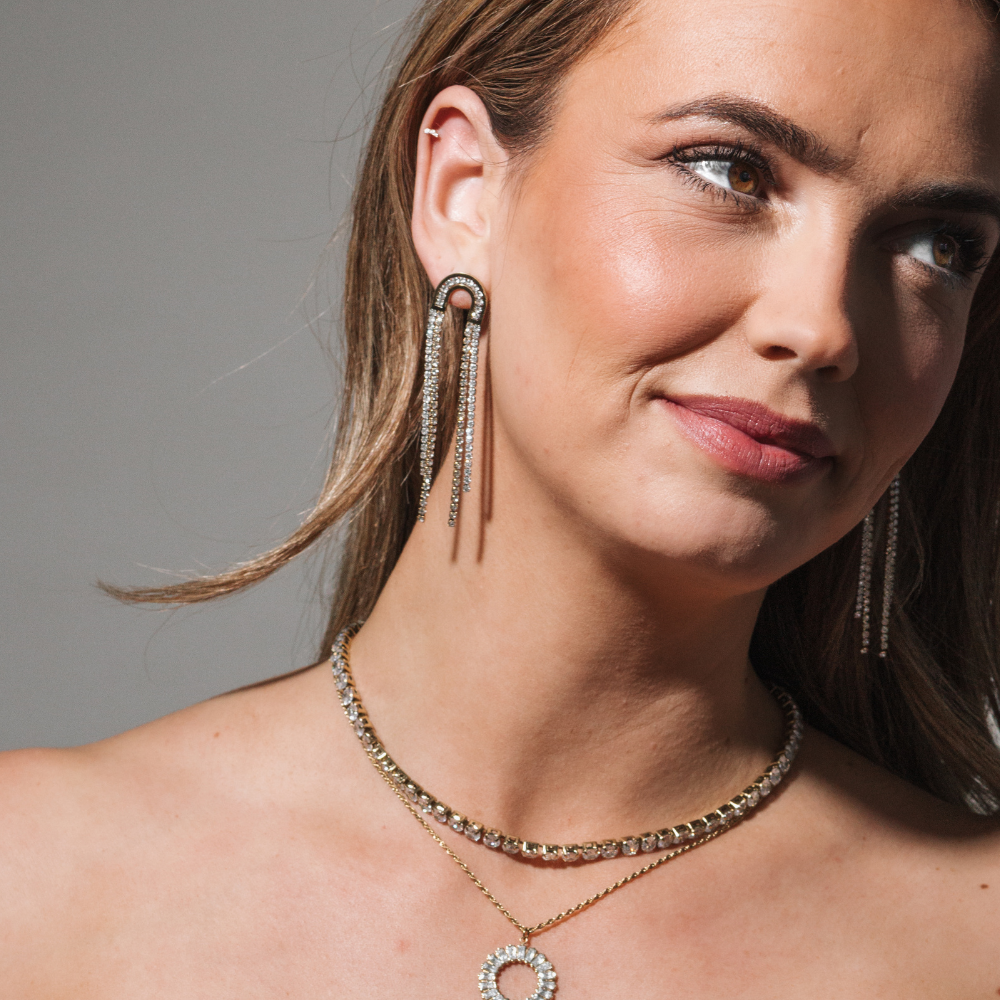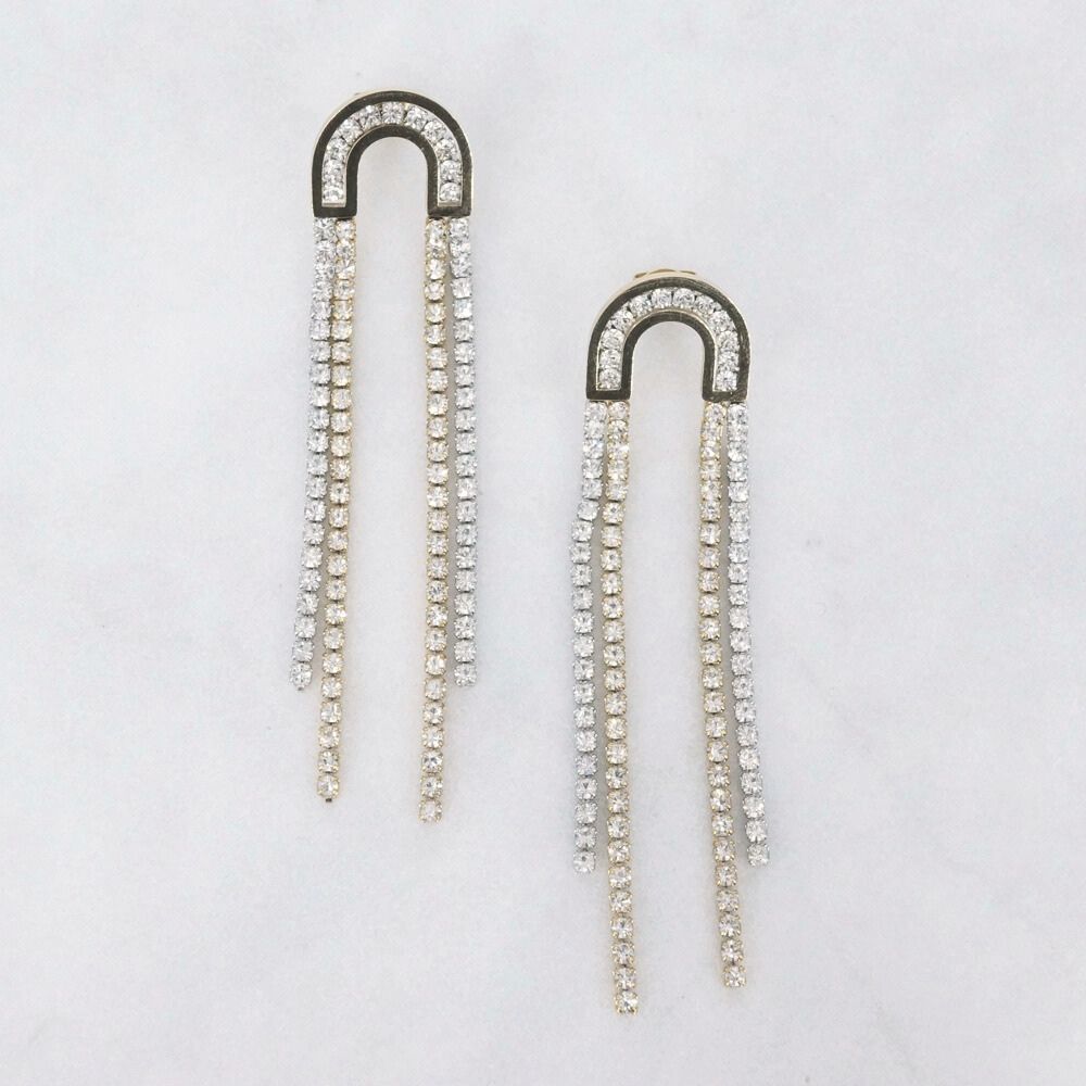 Hoe leuk zijn deze! De combinatie van een gouden U-vorm met glinsterende zirconia strass-fringes geeft ze een chique maar edgy uitstraling. Vooral door de mix van goud en zilver. Het perfecte paar om je party outfit net dat beetje extra sparkle te geven. Ze zijn licht, vallen mooi lang en bewegen subtiel mee: instant party vibes! Gemaakt van stainless steel, dus ook nog eens super duurzaam en blijven lang mooi!
