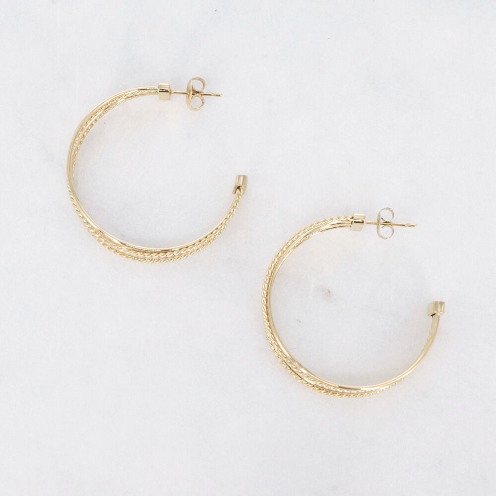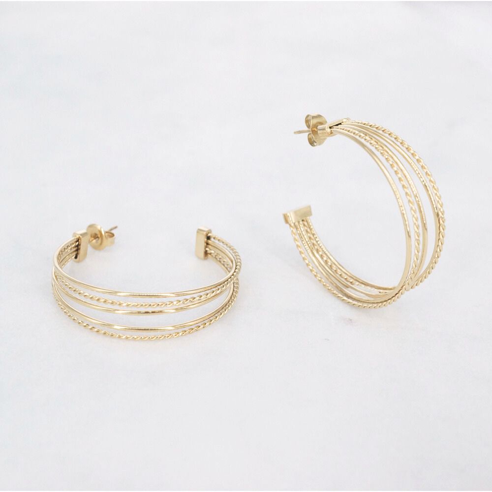 De Celin Hoops zijn een moderne versie van de klassieke hoop oorbellen. Deze elegante stainless steel oorbellen hebben een subtiel dubbelband design met een fijn gedraaid detail, wat zorgt voor een speelse maar stijlvolle look. De glanzende afwerking geeft de hoops een luxe look die zowel bij een casual outfit als bij een chique avondlook past. Dankzij het lichte, duurzame materiaal blijven ze comfortabel om te dragen én zijn ze waterproof.