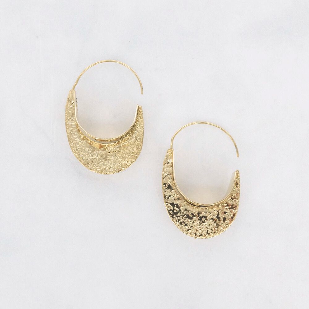 De Tisne Earrings zijn unieke statement oorbellen met een moderne vorm. Ze zijn gemaakt van stainless steel en hebben een gehamerde textuur die het licht prachtig vangt. Het speelse, golvende ontwerp geeft de oorbellen een elegante maar stoere uitstraling, dus perfect voor iedereen die houdt van een opvallend sieraad dat toch makkelijk te dragen is. De gouden kleur blijft lang mooi en verkleurt niet, dus je kunt ze dag in, dag uit dragen.