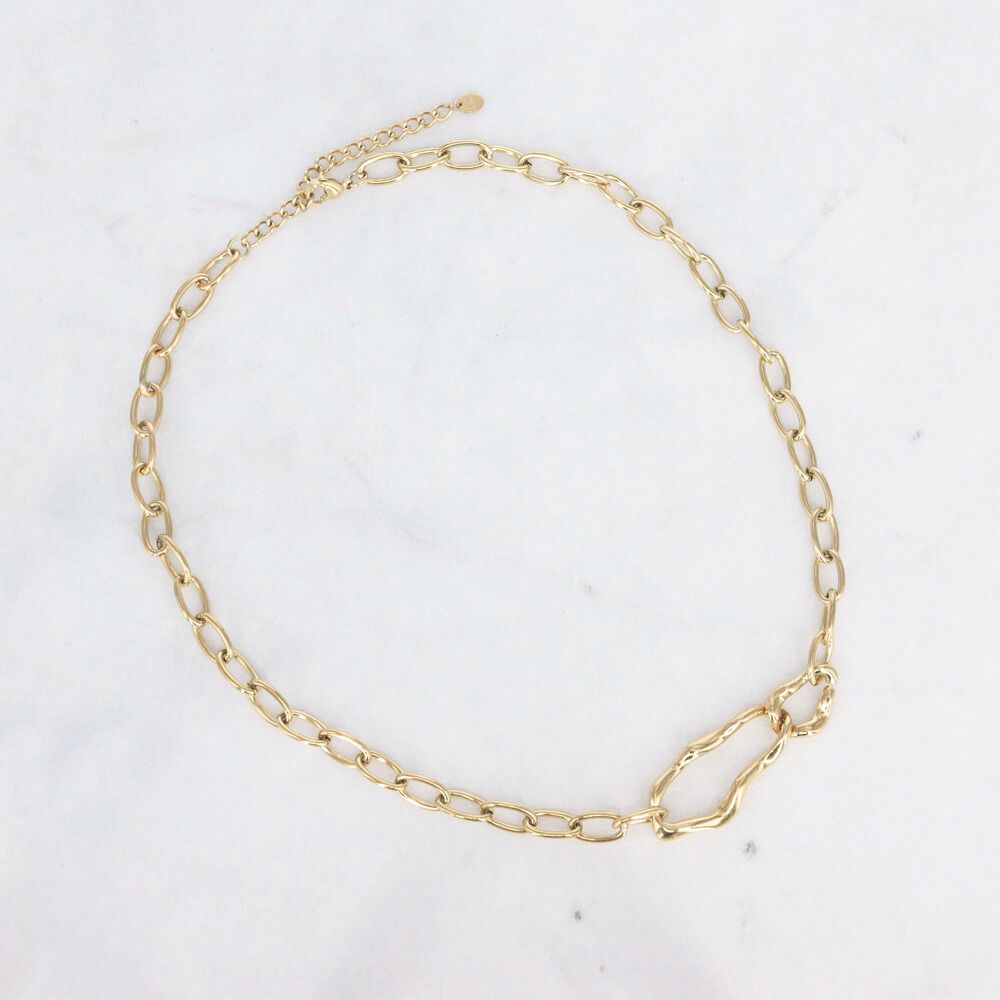 De Risel Necklace combineert elagantie met een unieke touch. De ketting bestaat uit elegante ovale schakels met 2 schakels in een organische vorm als eyecatcher. Minimalistisch genoeg voor elke dag, maar met nét dat beetje extra om op te vallen. Gemaakt van stainless steel, dus hij blijft lang mooi en verkleurt niet. Dankzij de verstelbare lengte draag je hem zowel kort als iets losser, ideaal om te combineren met andere kettingen of gewoon solo voor een clean look.