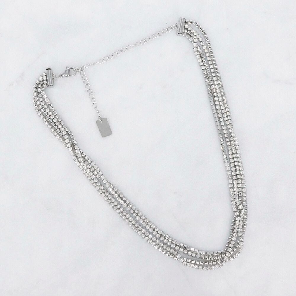 Deze layered necklace geeft meteen een chique party vibe. De mix van zilverkleurige schakels en sprankelende zirconia strass zorgt voor precies de juiste hoeveelheid shine. Door de meerdere laagjes valt de ketting speels en elegant, perfect voor feestjes, diners of als eye-catcher boven een basic top. Gemaakt van stainless steel (dus kleurvast) en afgewerkt met schitterende steentjes die prachtig schitteren in het licht. Met de verstelbare sluiting draag je ‘m precies op de juiste lengte.