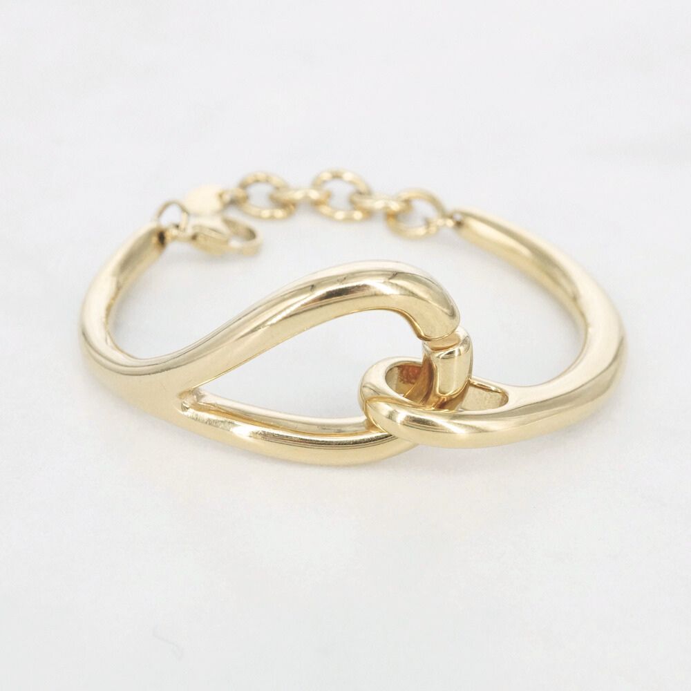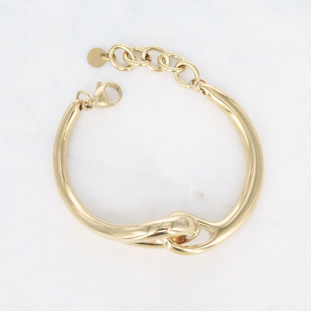 This half bangle is a stylish stainless steel bracelet with a striking closed-link design. The flowing, rounded shapes and polished finish give this bracelet a modern, luxurious look. Thanks to the stainless steel, the bracelet retains its color and shine, even with daily wear. The adjustable clasp also ensures a perfect fit on any wrist. Wear the Yse Bracelet solo as a statement piece or combine it with other gold jewelry for a complete, layered look.